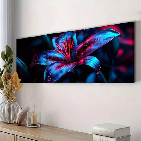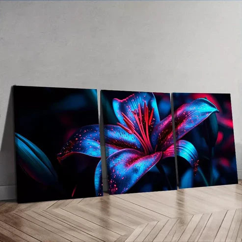 3pcs 3pcs Lily Flowers Nature Dark Background Wall Art Set Canvas Framed 60x90cm - High Quality Print 100% Australian Made Wall Canvas Ready to Hang