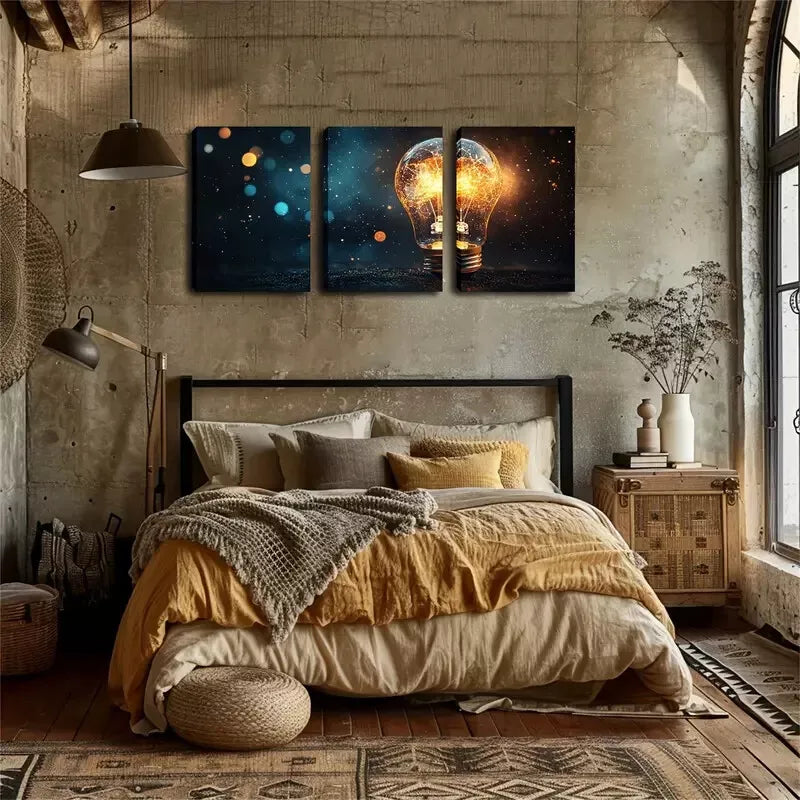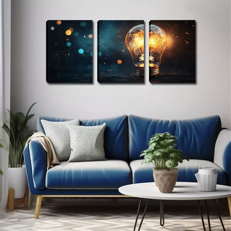3pcs A Bright Light Bulb Wall Art Set Canvas Framed 40x60cm - High Quality Print 100% Australian Made Wall Canvas Ready to Hang