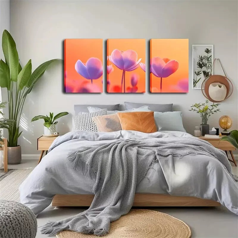 3pcs A few Pink Flowers Wall Art Set Canvas Framed 40x60cm - High Quality Print 100% Australian Made Wall Canvas Ready to Hang