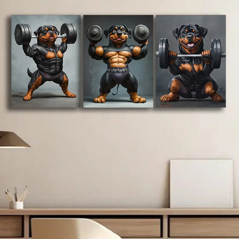 3pcs A fitness Rottweiler Metal Print Ready to Hang Art