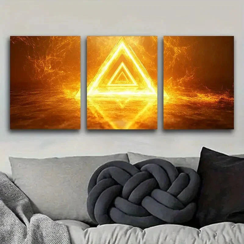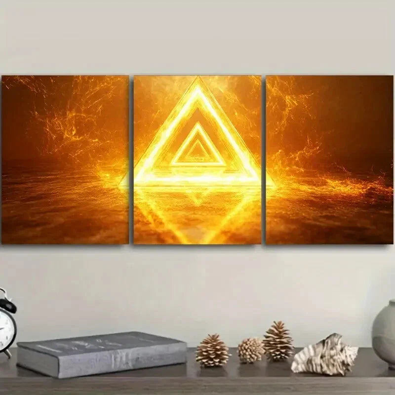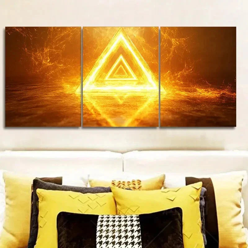 3pcs A glowing yellow triangle Art Painting Metal Print Ready to Hang Art