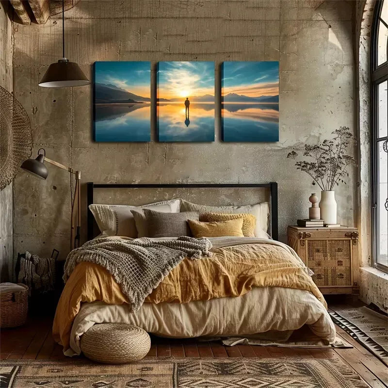 3pcs A Person On The Lake Wall Art Set Canvas Framed 40x60cm - High Quality Print 100% Australian Made Wall Canvas Ready to Hang