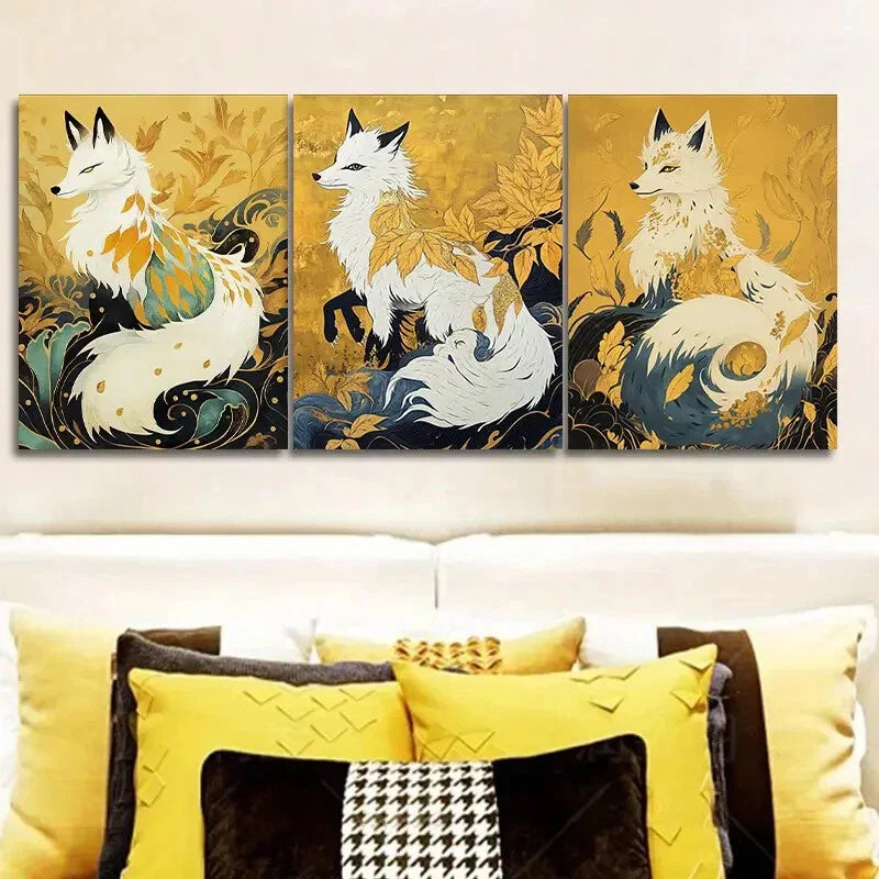 3pcs A platinum fox Art Painting Metal Print Ready to Hang Art