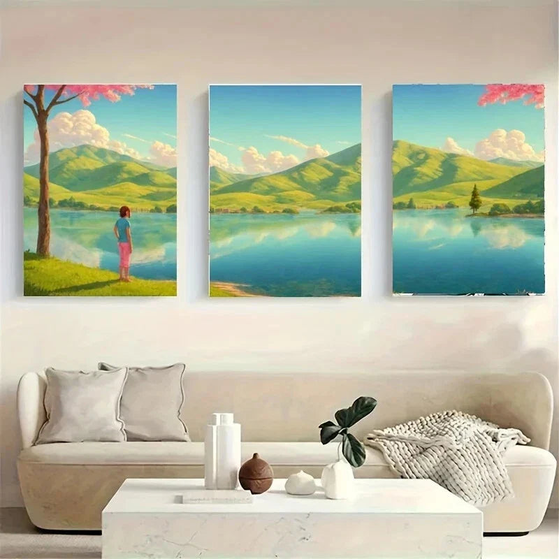 3pcs A Serene Landscape Featuring Nature Metal Print Ready to Hang Art