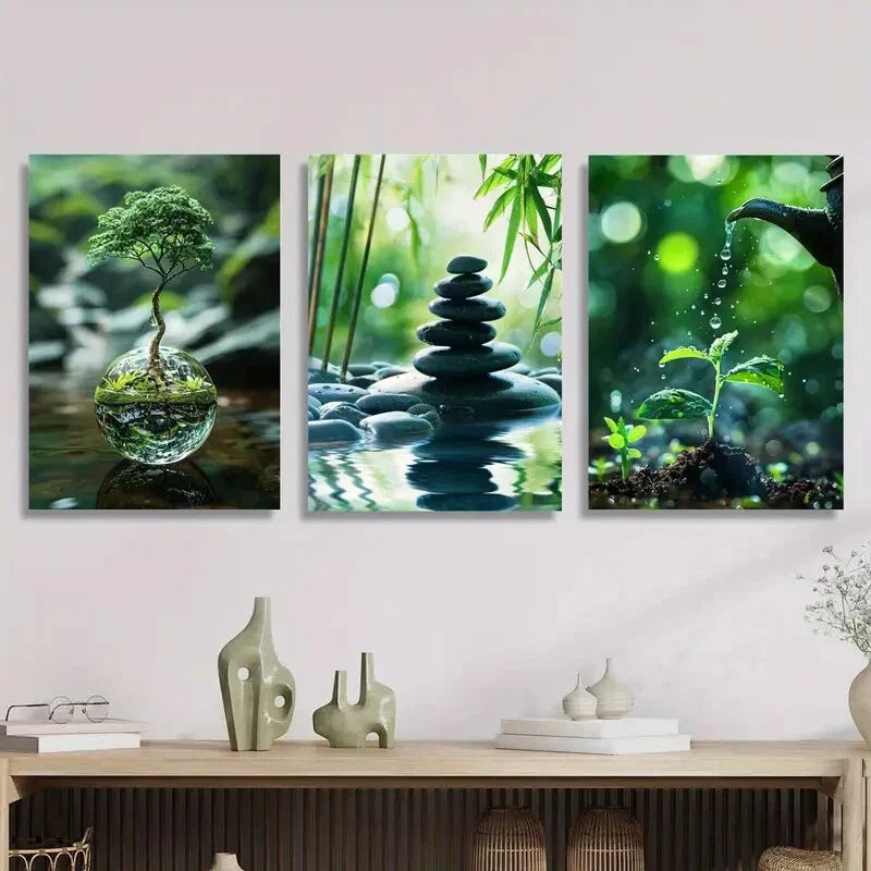 3pcs A Tree in a Water Ball, Bamboo Metal Print Ready to Hang Art