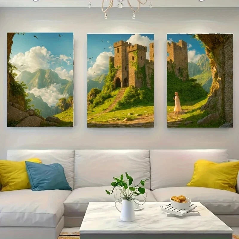 3pcs A Young Woman in White Dress Stands Metal Print Ready to Hang Art