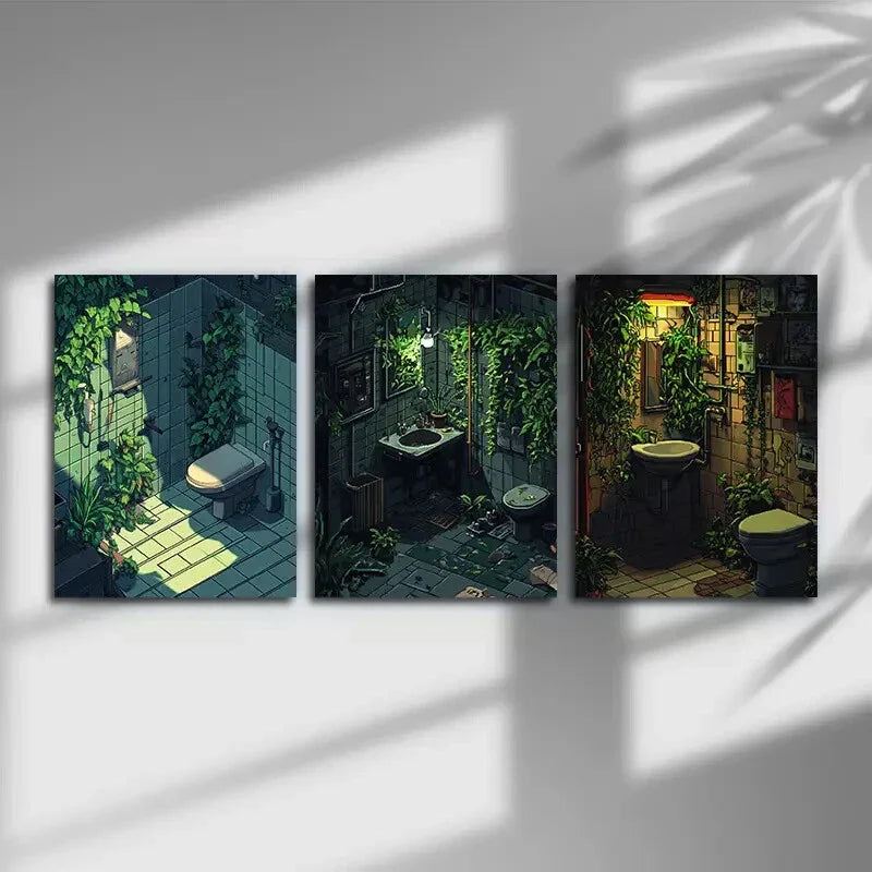 3pcs Abandoned Green Leaves Lights Metal Print Ready to Hang Art