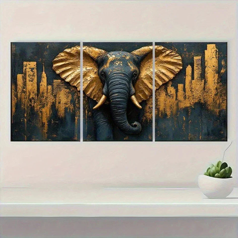 3pcs Abstract Animal Theme Golden Accents Metal Print Ready to Hang Art