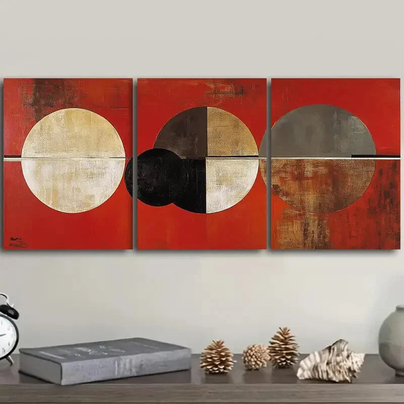 3pcs Abstract art painting of circles and rings D Wall Art Set Canvas Framed 40x60cm - High Quality Print 100% Australian Made Wall Canvas Ready to Hang