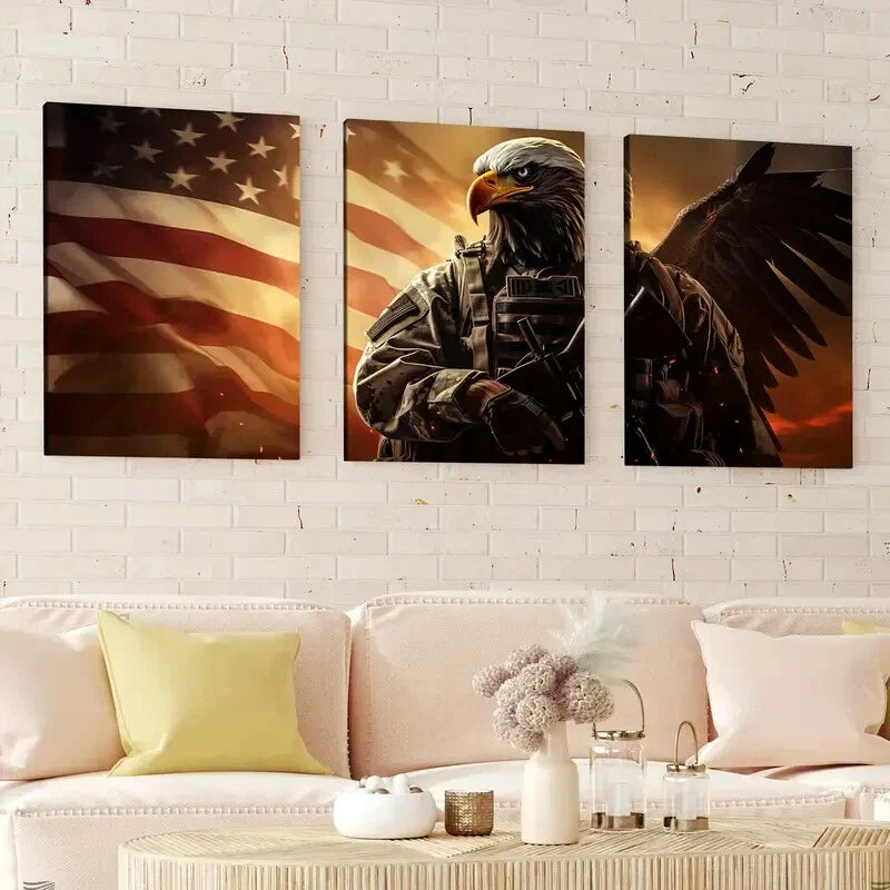 3pcs Abstract Bald Eagle Flying American Flag Wall Art Set Canvas Framed 40x60cm - High Quality Print 100% Australian Made Wall Canvas Ready to Hang