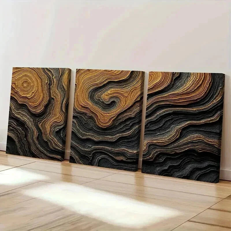 3pcs Abstract Black and Golden Bold Earthy Wall Art Set Canvas Framed 40x60cm - High Quality Print 100% Australian Made Wall Canvas Ready to Hang