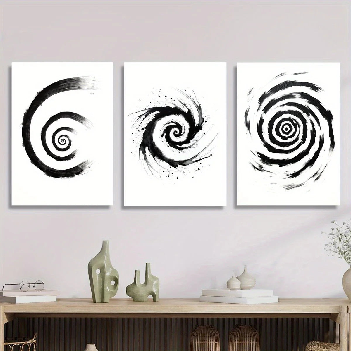 3pcs Abstract Black and White Spiral Classic Design Metal Print Ready to Hang Art