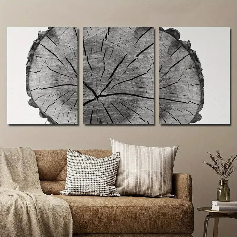 3pcs Abstract Black And White Tree Stump Metal Print Ready to Hang Art