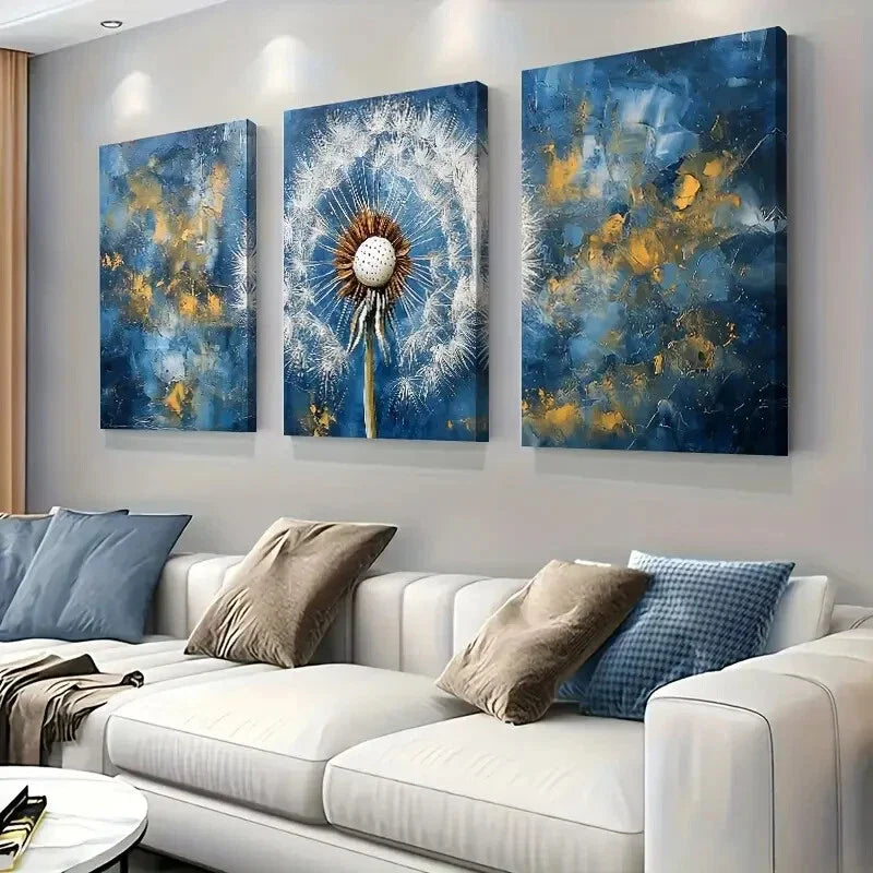 3pcs Abstract Blue And Golden Dandelion Decor Wall Art Set Canvas Framed 40x60cm - High Quality Print 100% Australian Made Wall Canvas Ready to Hang