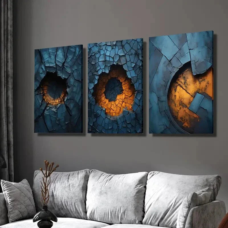 3pcs Abstract Blue Metal Texture Wall Art Set Canvas Framed 40x60cm - High Quality Print 100% Australian Made Wall Canvas Ready to Hang