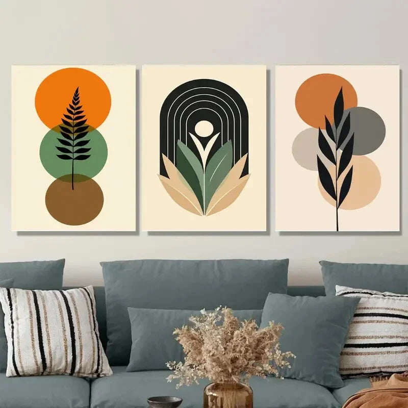3pcs Abstract Boho Style Framed Botanical Wall Art Set Canvas Framed 40x60cm - High Quality Print 100% Australian Made Wall Canvas Ready to Hang