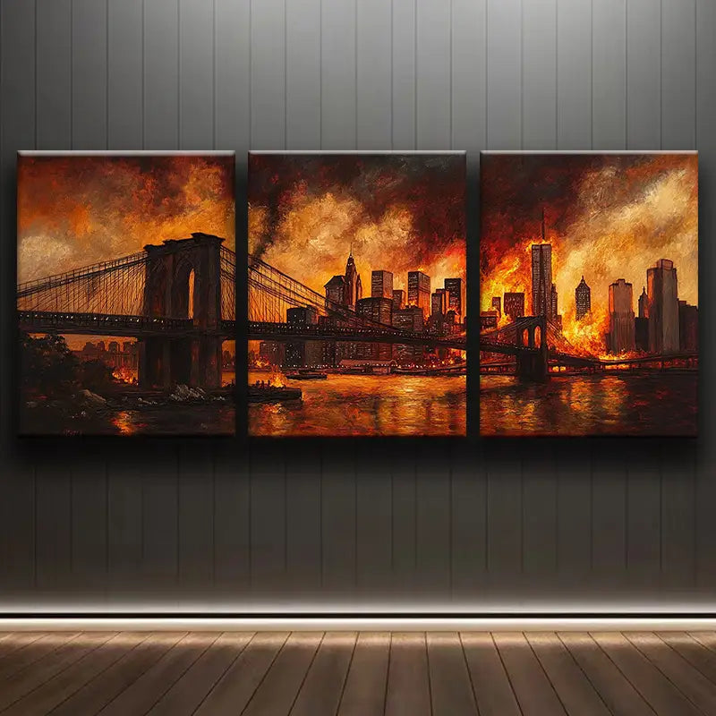 3pcs Abstract Bridge Architecture Dark Red Design Metal Print Ready to Hang Art