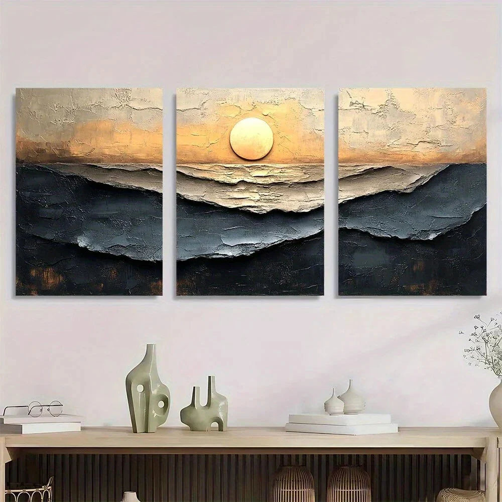 3pcs Abstract Brown Tones Vintage Style Metal Print Ready to Hang Art