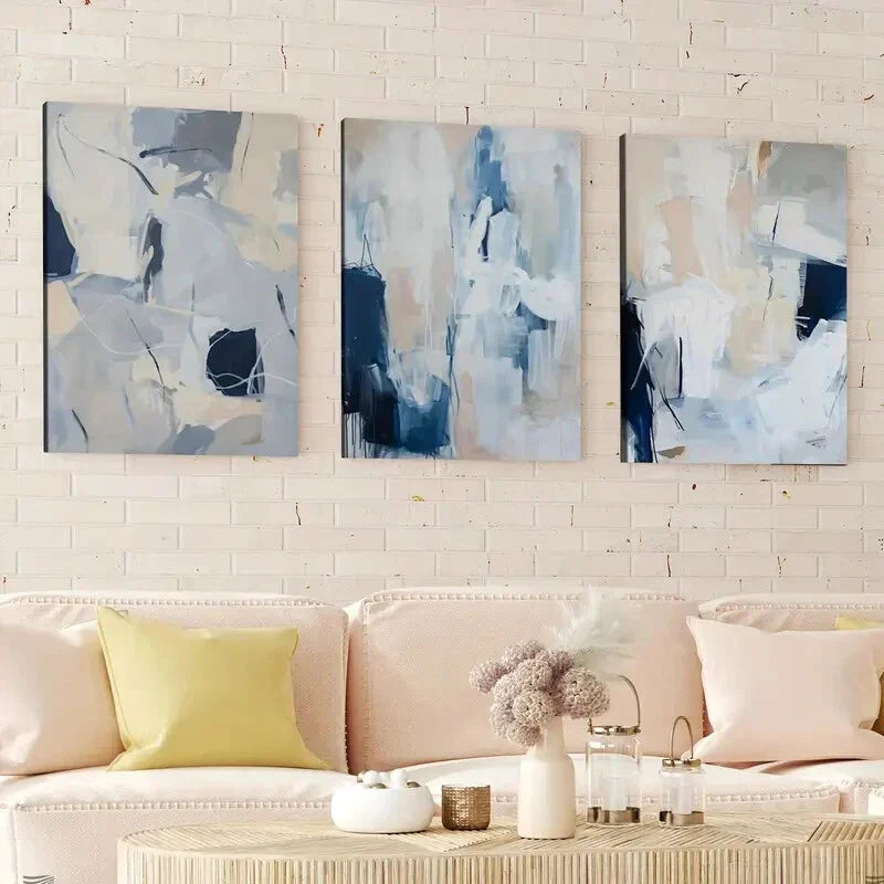 3pcs Abstract Brush Stroke Geometric Modern Blue Wall Art Set Canvas Framed 40x60cm - High Quality Print 100% Australian Made Wall Canvas Ready to Hang
