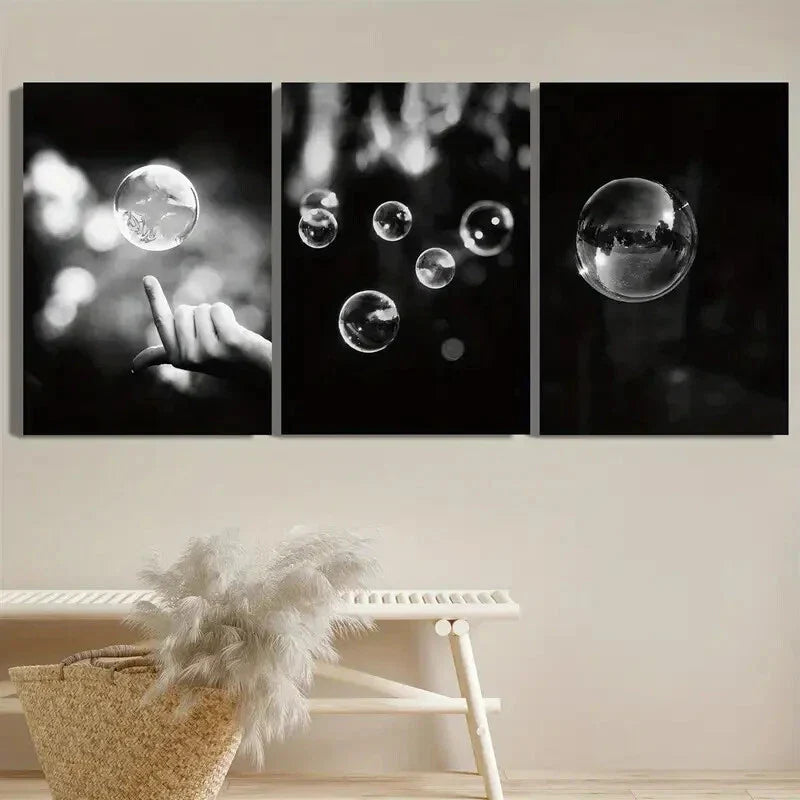 3pcs Abstract Bubble Black and White Metal Print Ready to Hang Art