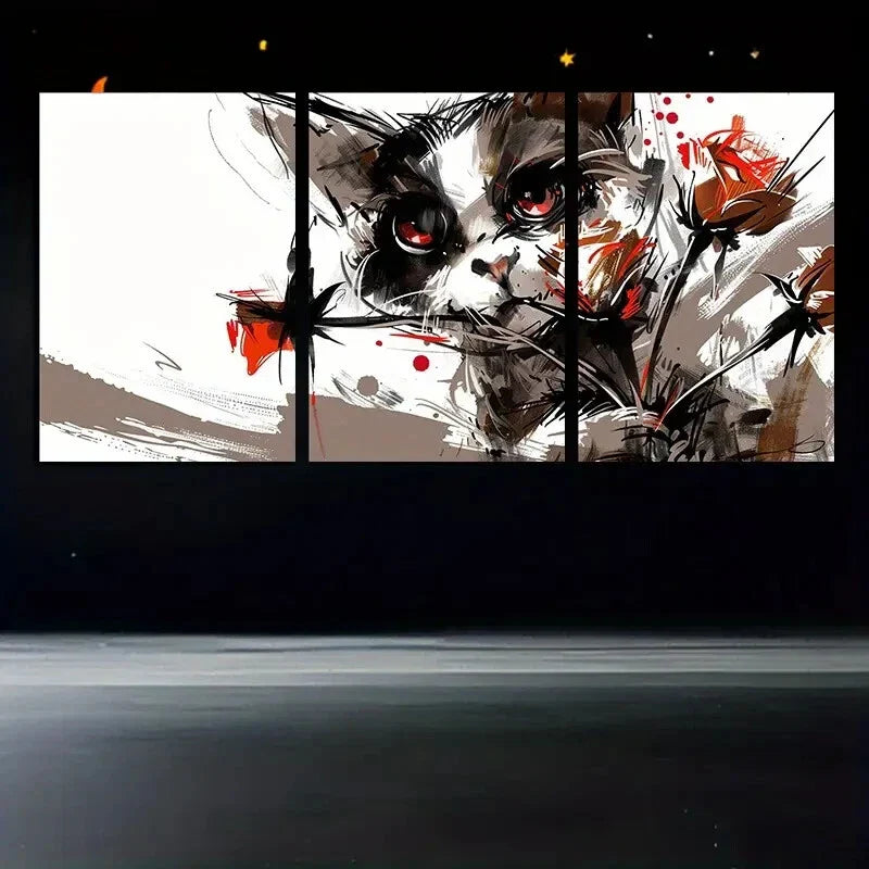 3pcs Abstract Cat Modern Decorative Metal Print Ready to Hang Art