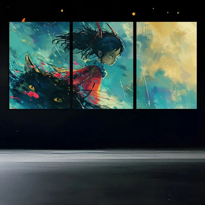 3pcs Abstract Cat Modern Vibrant Metal Print Ready to Hang Art