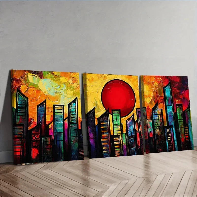 3pcs Abstract Cityscape Darkness Color Perfect Wall Art Set Canvas Framed 40x60cm - High Quality Print 100% Australian Made Wall Canvas Ready to Hang