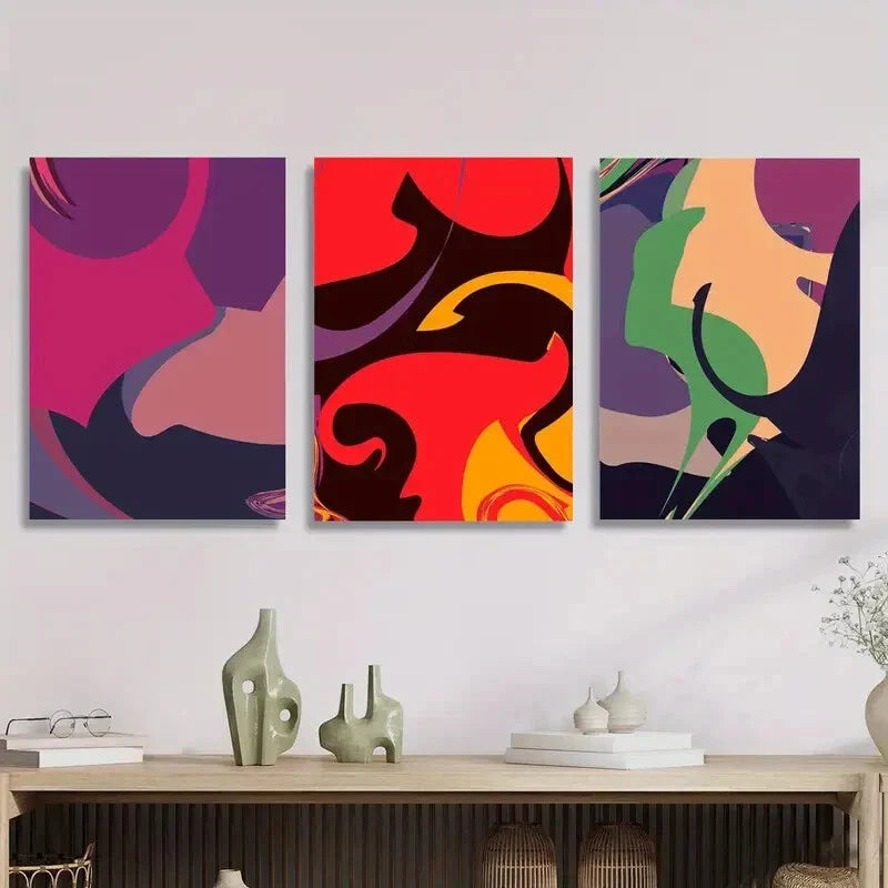 3pcs Abstract Color Block Modern Pop Style Metal Print Ready to Hang Art