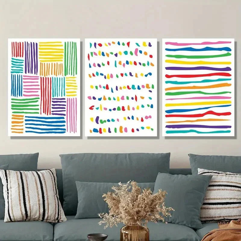 3pcs abstract color line drawing, dotted line ,Metal Print Ready to Hang Art