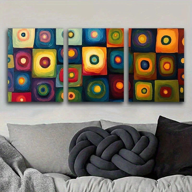 3pcs Abstract Colourful Blocks Yellow Blue Metal Print Ready to Hang Art