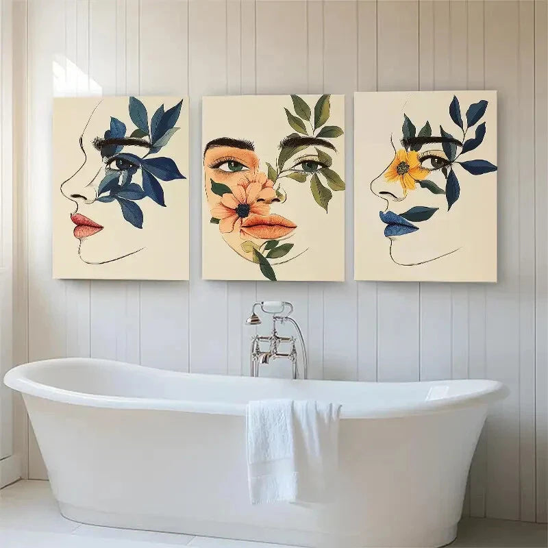 3pcs Abstract Faces & Floral Botanical Perfect Wall Art Set Canvas Framed 40x60cm - High Quality Print 100% Australian Made Wall Canvas Ready to Hang