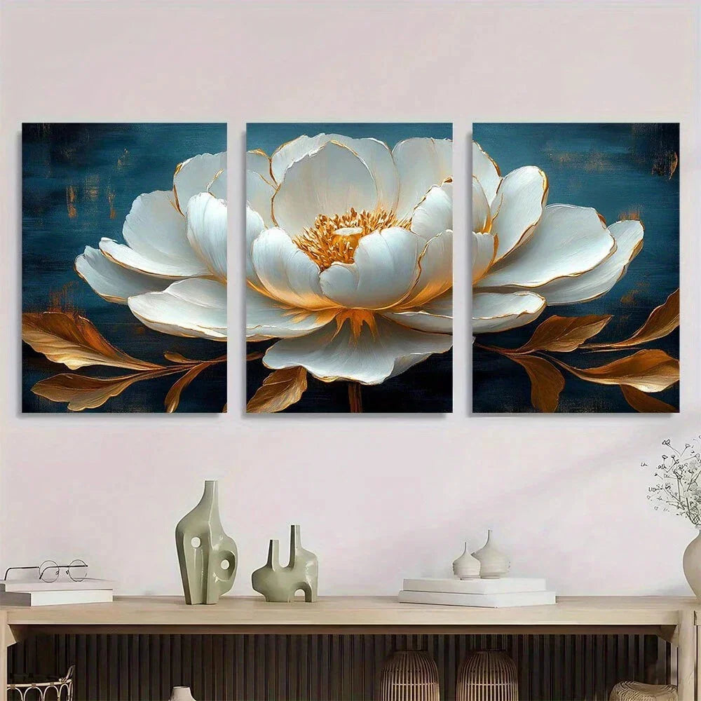 3pcs Abstract Floral Elegant White Peony Metal Print Ready to Hang Art