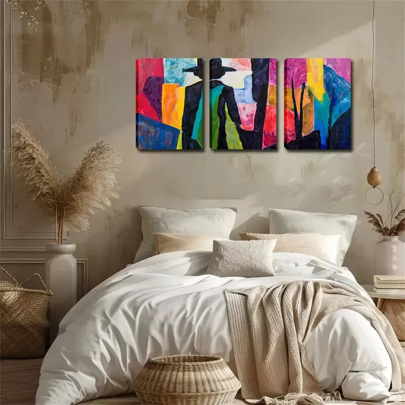 3pcs Abstract for Man's Back Wall Art Set Canvas Framed 40x60cm - High Quality Print 100% Australian Made Wall Canvas Ready to Hang