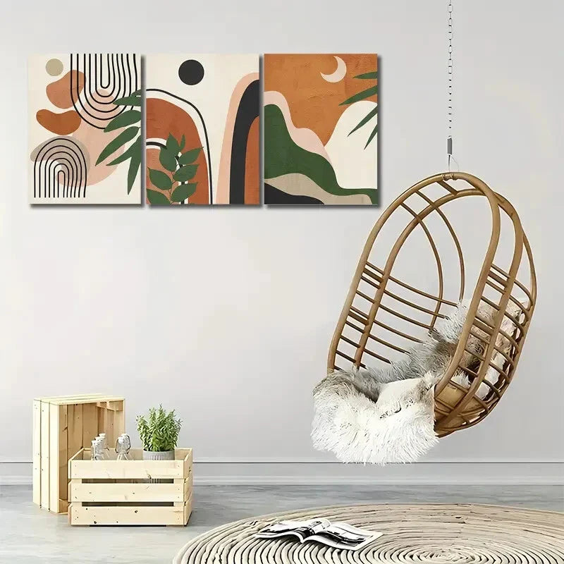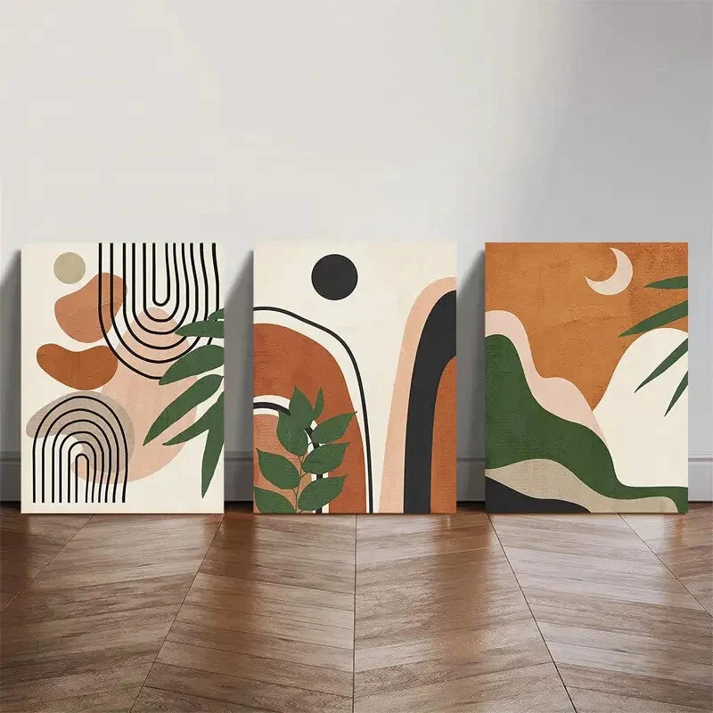 3pcs Abstract Geometric & Botanical Wall Art Set Canvas Framed 40x60cm - High Quality Print 100% Australian Made Wall Canvas Ready to Hang