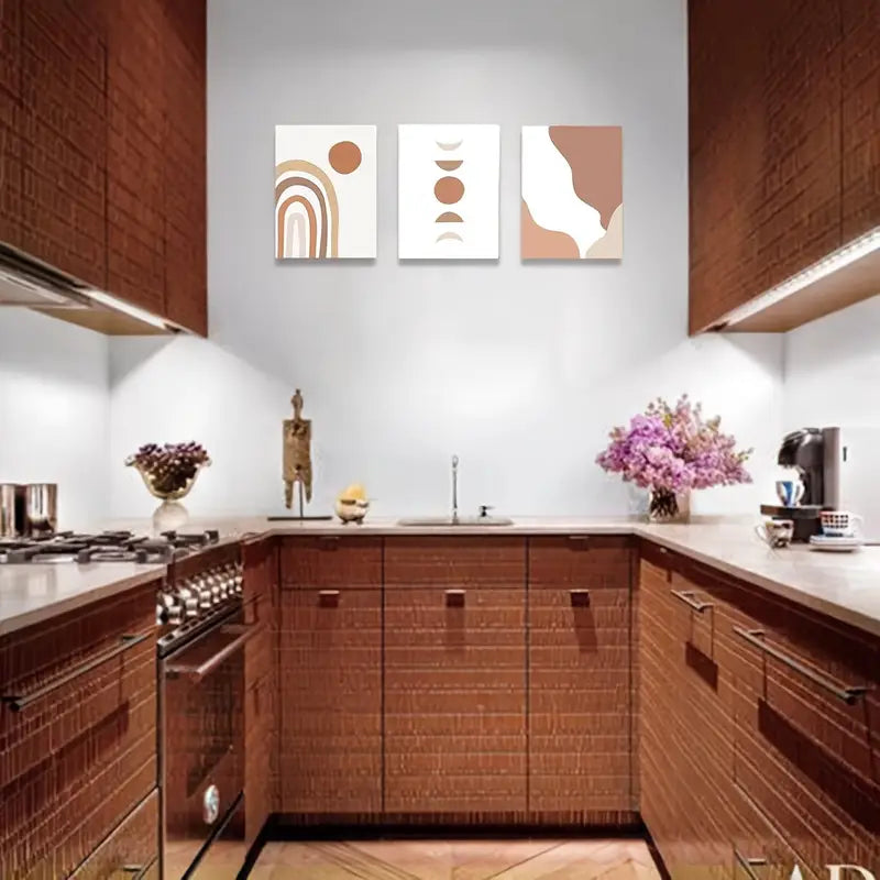 3pcs Abstract Geometric Designs in Earthy Tones Design Metal Print Ready to Hang Art