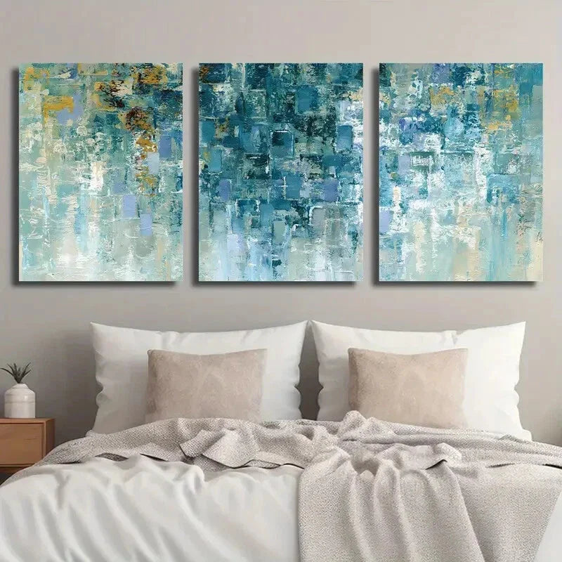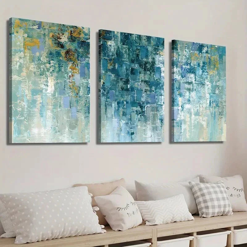3pcs Abstract Geometric Golden and Cyan Texture Wall Art Set Canvas Framed 40x60cm - High Quality Print 100% Australian Made Wall Canvas Ready to Hang