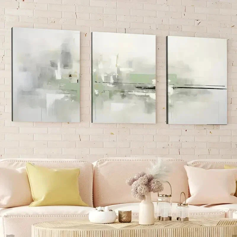 3pcs Abstract Geometric Green and Gray White Wall Art Set Canvas Framed 40x60cm - High Quality Print 100% Australian Made Wall Canvas Ready to Hang