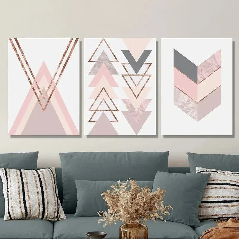3pcs Abstract geometric shape line art Metal Print Ready to Hang Art