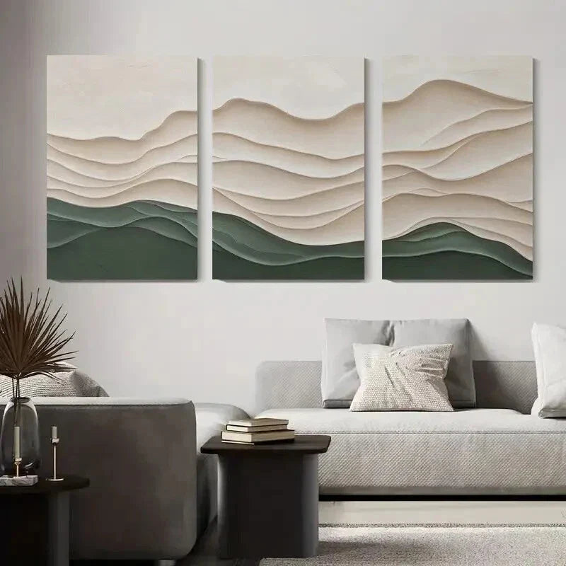 3pcs Abstract Geometric Wave Neutral Tones Metal Print Ready to Hang Art