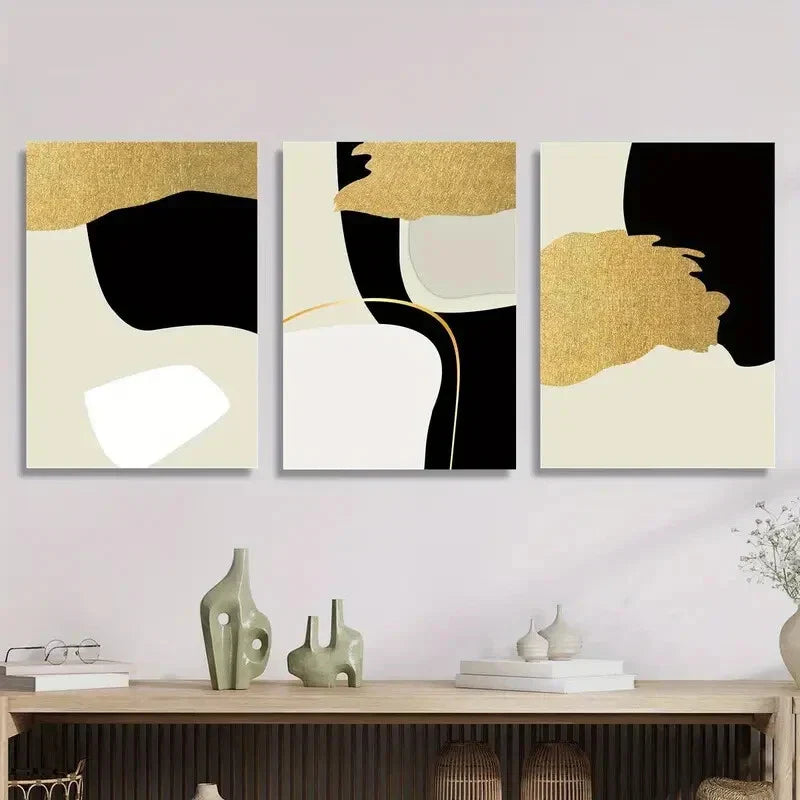 3pcs abstract golden art,, gold leaf Murals Metal Print Ready to Hang Art