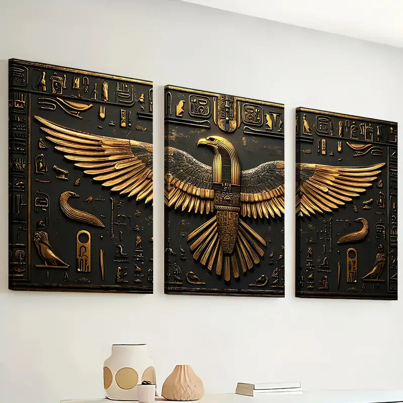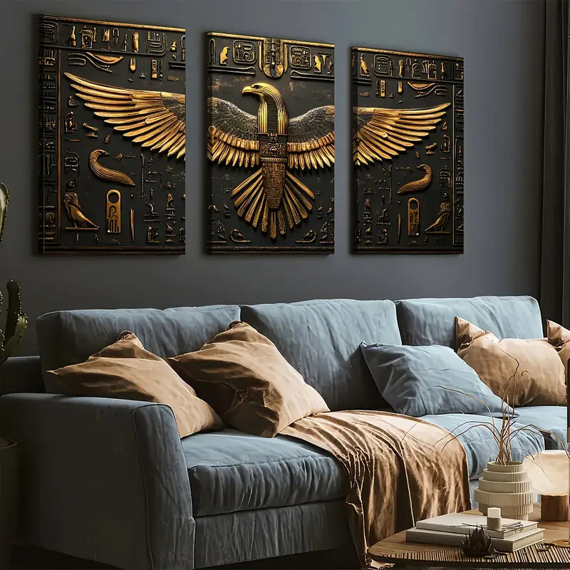 3pcs Abstract Golden Giant Eagle Statue Art Boldness Wall Art Set Canvas Framed 40x60cm - High Quality Print 100% Australian Made Wall Canvas Ready to Hang