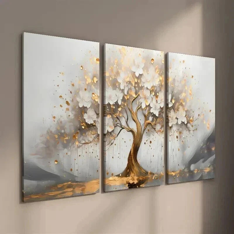 3pcs Abstract Golden Tree with White Flowers Wall Art Set Canvas Framed 40x60cm - High Quality Print 100% Australian Made Wall Canvas Ready to Hang