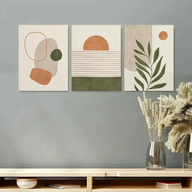 3pcs Abstract Green Tropical Leaves Geometric Metal Print Ready to Hang Art