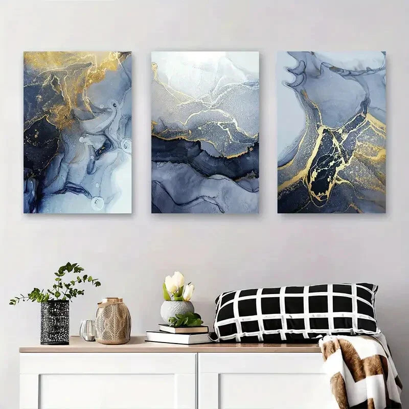 3pcs Abstract Ink and Golden Marble Metal Print Ready to Hang Art