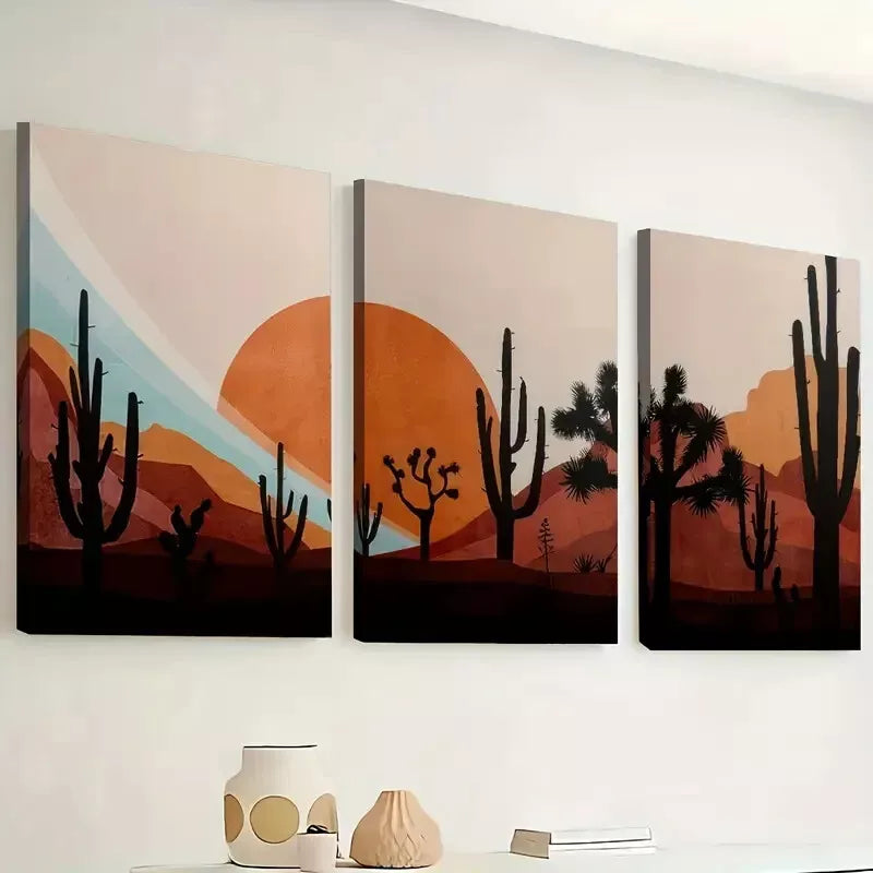 3pcs abstract landscape art, cartoon cactus Wall Art Set Canvas Framed 40x60cm - High Quality Print 100% Australian Made Wall Canvas Ready to Hang