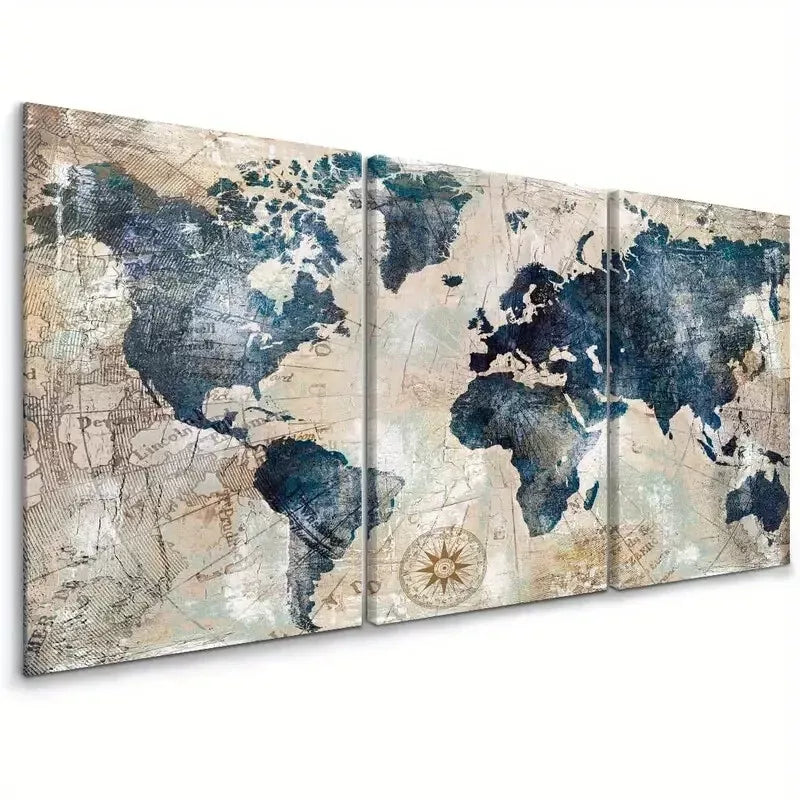3pcs Abstract Map Decorative Modern Art Canvas Framed 40x60cm - High Quality Print 100% Australian Made Wall Canvas Ready to Hang