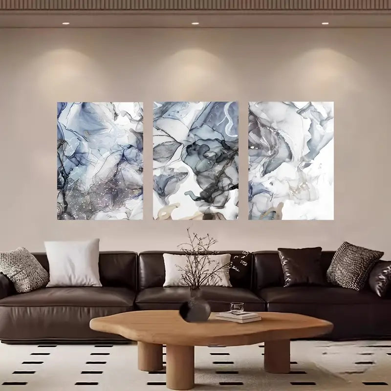3pcs Abstract Marble Blue White and Gray Metal Print Ready to Hang Art