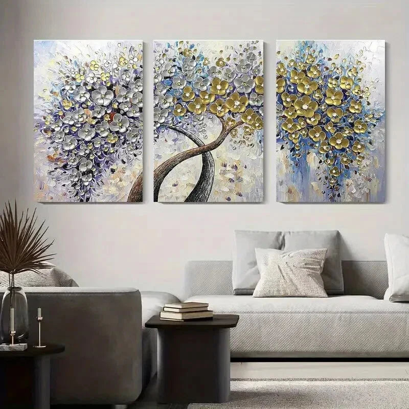 3pcs Abstract Metallic Floral Tree Triptych Metal Print Ready to Hang Art