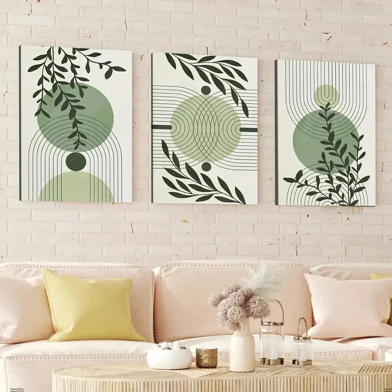 3pcs Abstract Mid Century Boho Geometric Leaves Wall Art Set Canvas Framed 40x60cm - High Quality Print 100% Australian Made Wall Canvas Ready to Hang