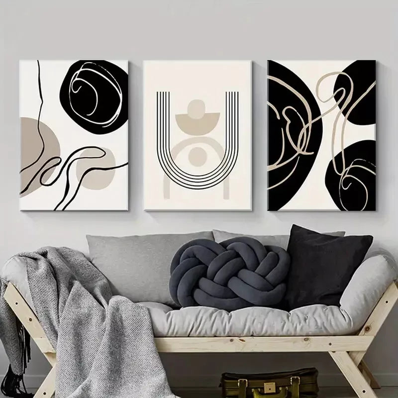3pcs Abstract Mid Century Modern Boho Wall Art Canvas Framed 40x60cm - High Quality Print 100% Australian Made Wall Canvas Ready to Hang